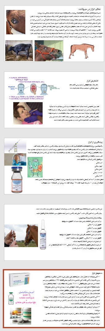 تعریف بیماری کزاز-تاریخچه کزاز- عامل بیماری- اتیولوژی آن- راههای ورود عامل کزاز- بیماریزایی کزاز- علائم کزاز در انسان- علائم کزاز در حیوانات- تشخیص کزاز- پیشگیری- درمان